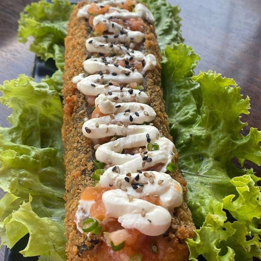 Descubra a perfeição culinária com o nosso 'Hot Big de Salmão Cru ou Empanado', uma das exclusivas 'Especiais da Casa'. Este prato é recheado generosamente com lâminas de salmão fresco, cuidadosamente selecionadas, que podem ser servidas cruas, para apreciar o autêntico sabor do mar, ou empanadas, proporcionando uma textura crocante irresistível. Uma experiência gastronômica que promete deleitar o paladar.