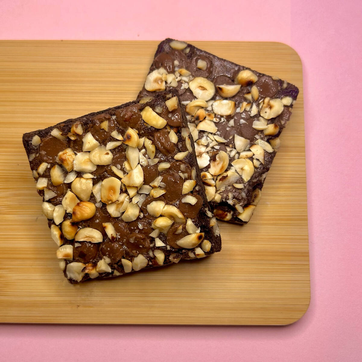 Brownie cremoso feito com chocolate 70%, gotas de chocolate nobre blend e muitas avelãs tostadas por cima.