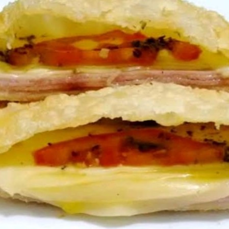 Em formato de pastel mas somente a massa.