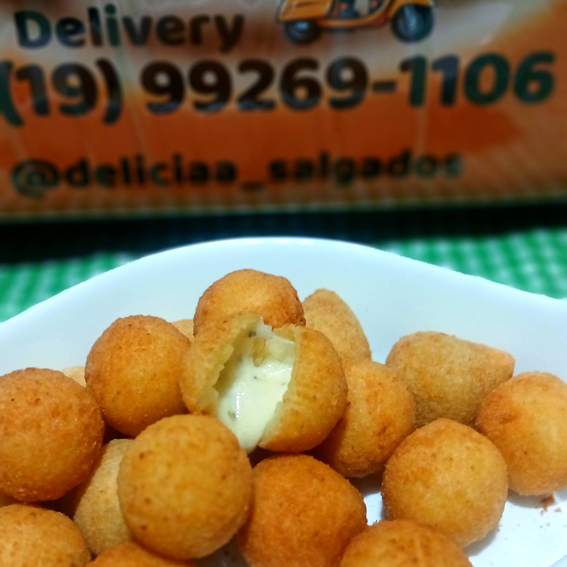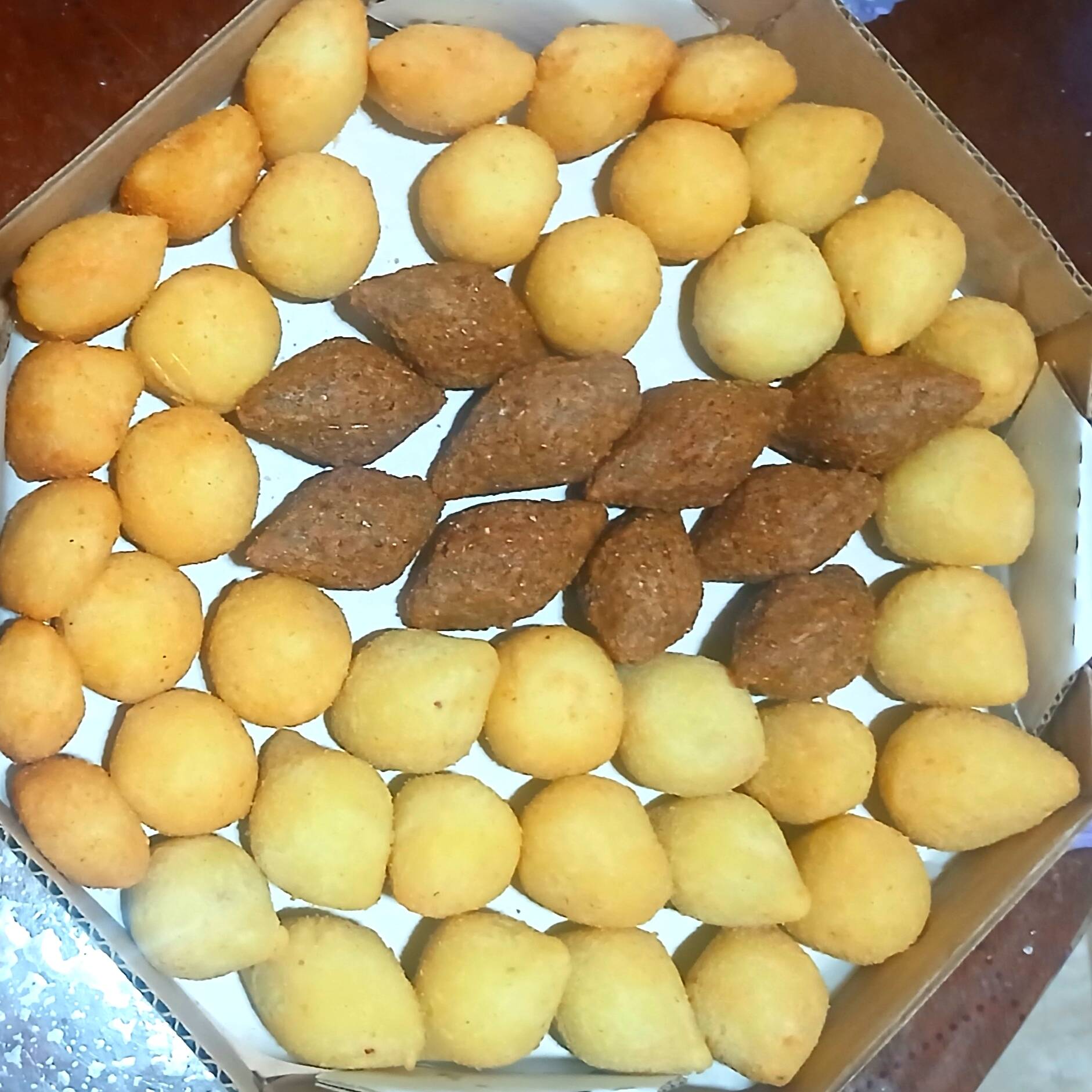 50 Salgados crocantes , quentinhos e deliciosos .