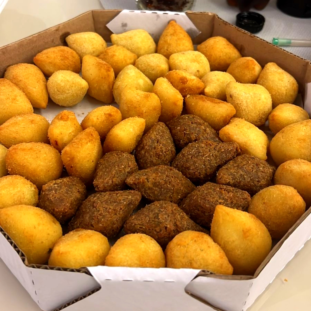 100 salgados crocantes e deliciosos com super recheio que derrete na boca