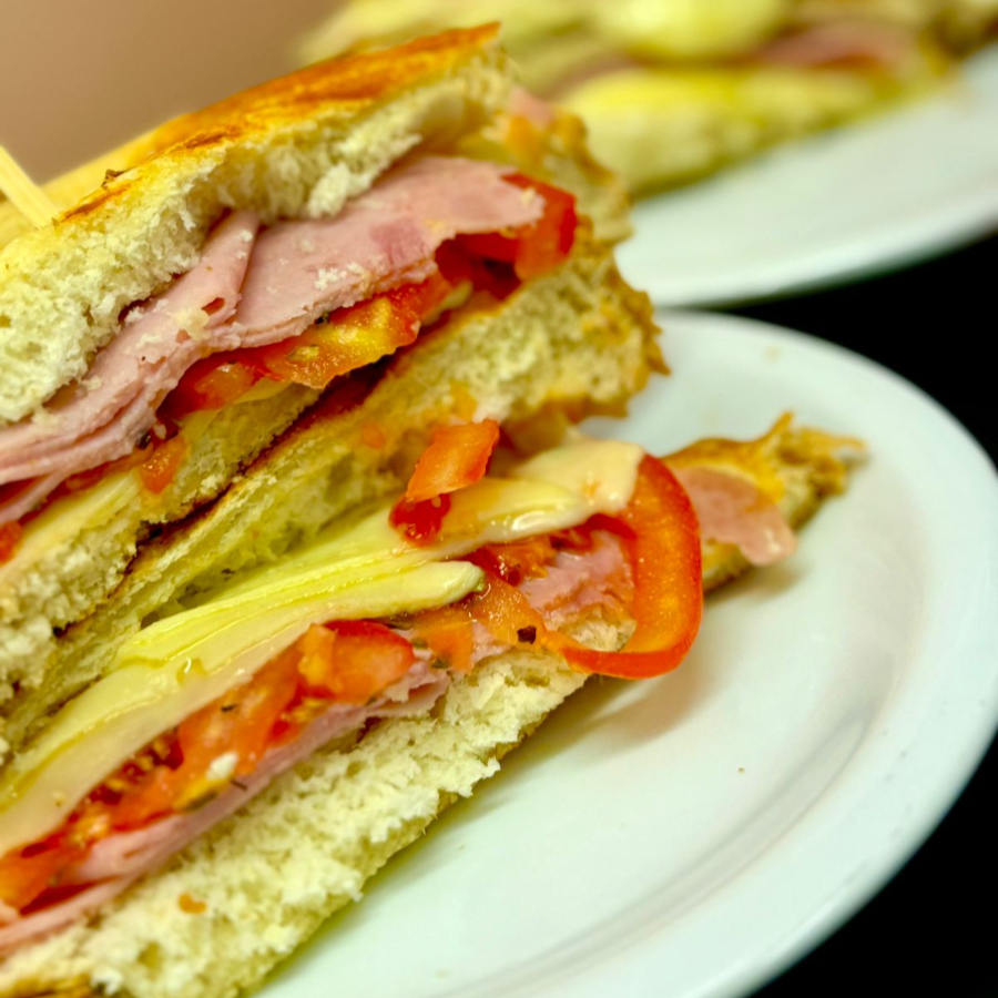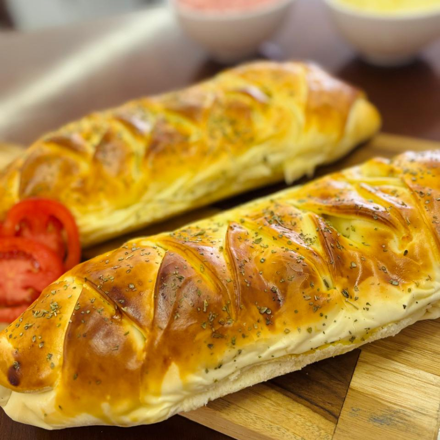 Requeijão, presunto, queijo, tomate, bacon e orégano.
