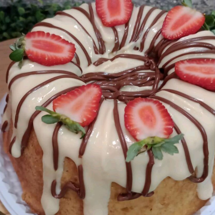 Bolo Massa Branca Com Cobertura De Ninho