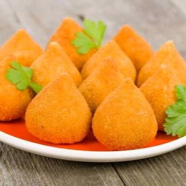 25 mine coxinha de frango peso aproximado 20 gramas cada.