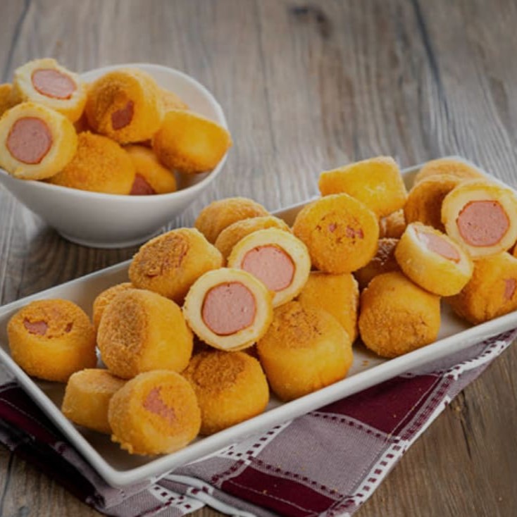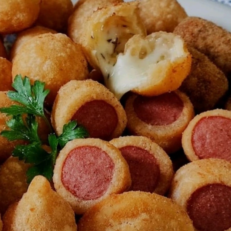 25 mini salsichas empanadas, crocantes, sequinhas e muito saborosa. Aproximadamente 20g cada unidade.
