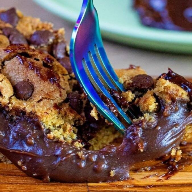 Massa cookies, recheada de brigadeiro belga e gostas de chocolate Ela aquecida fica melhor ainda!