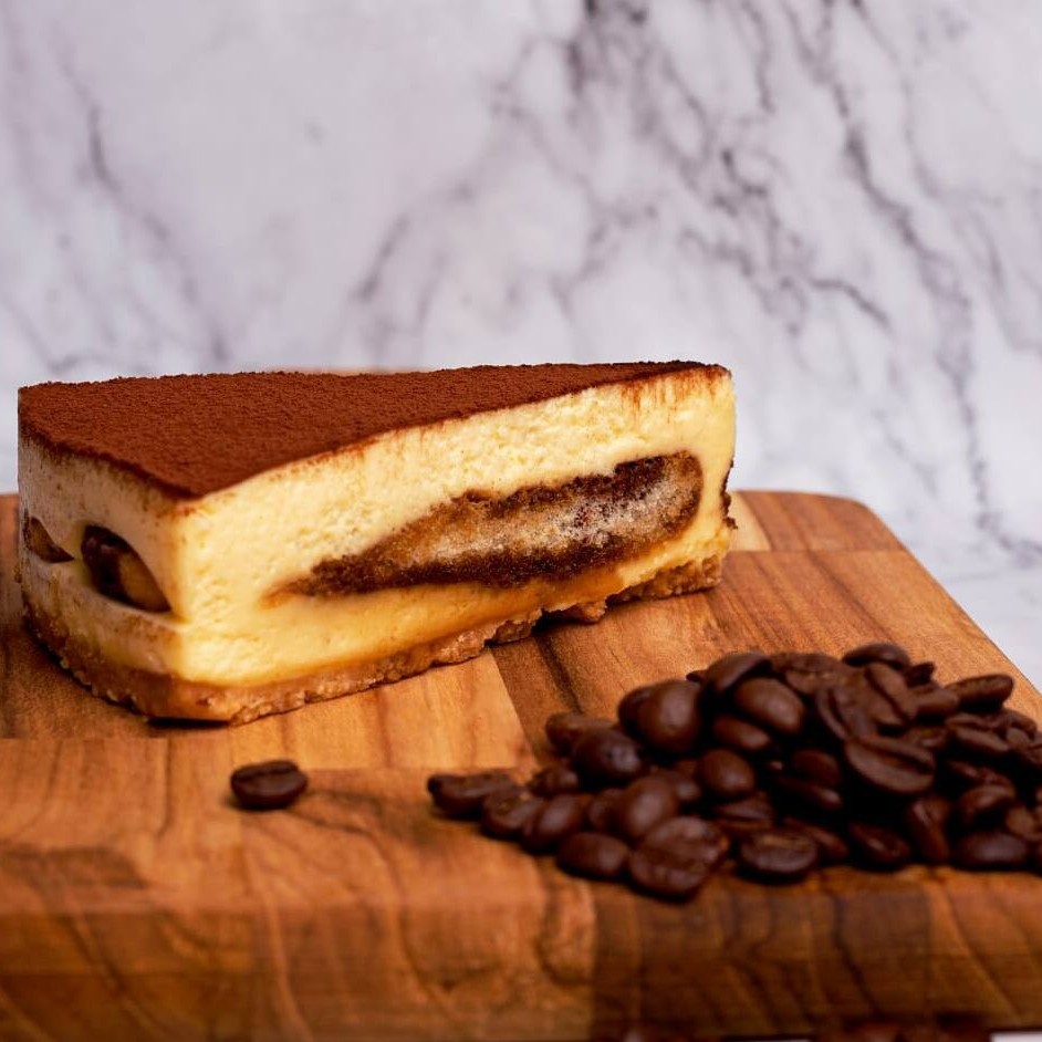 Massa de bolacha, creme tradicional de mascarpone, bolacha champanhe, café e cacau