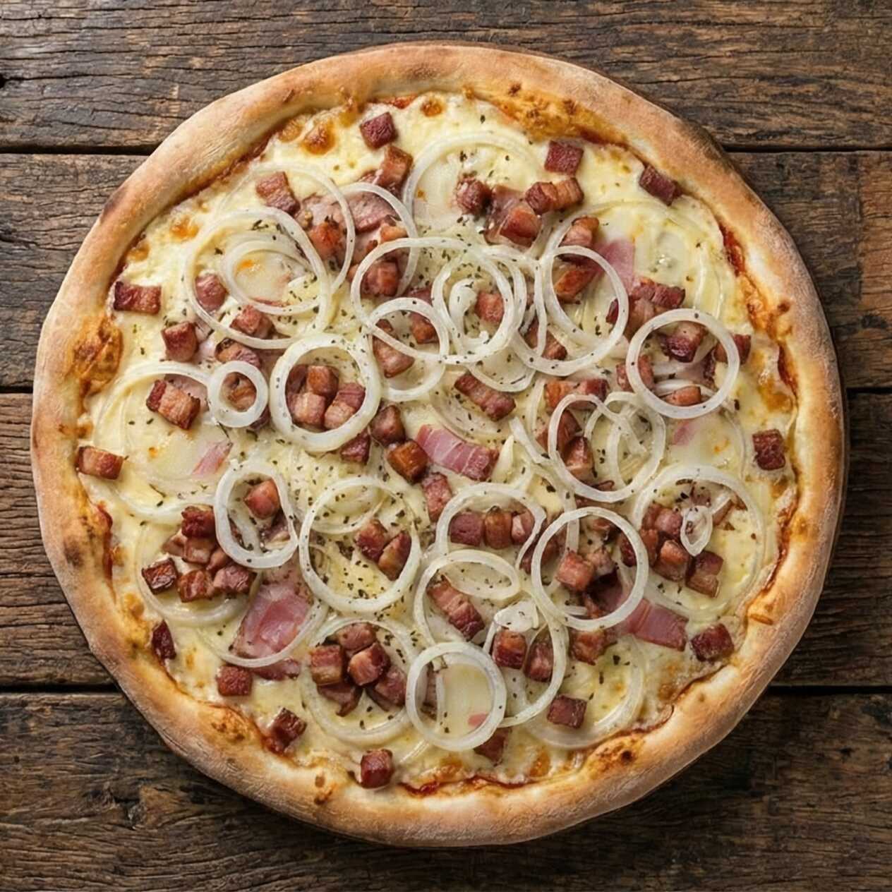Mussarela especial, Bacon em cubo e cebola