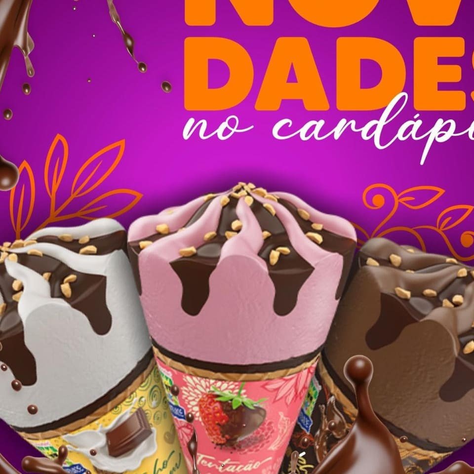 Açaí, Leite em Pó, Creme de Avelã, Confete, Creme de Leitinho, Ovomaltine e Leite condensado.