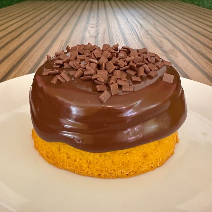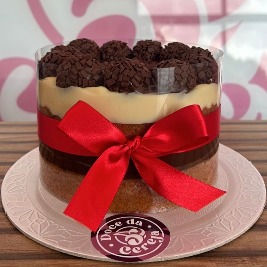 Massa caseira com nossa calda especial, 1 camada de recheio e coberto com brigadeiro cremoso e decorado com 10 brigadeiros e granule ao leite nobre