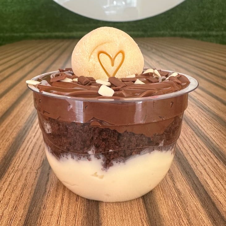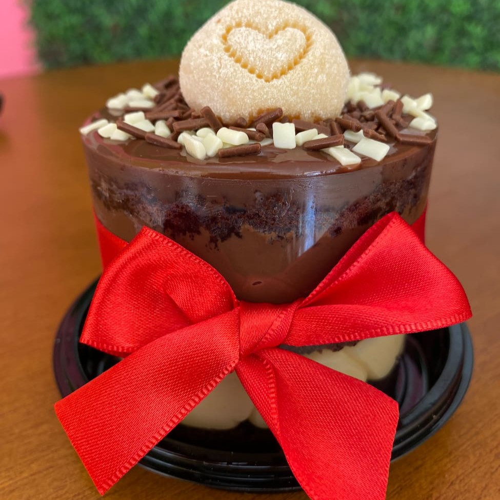 Massa de chocolate caseira , recheio de trufa de chocolate blend e trufa de leite Ninho calda especial bem molhadinho
