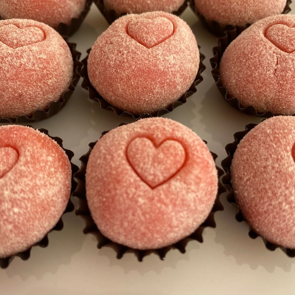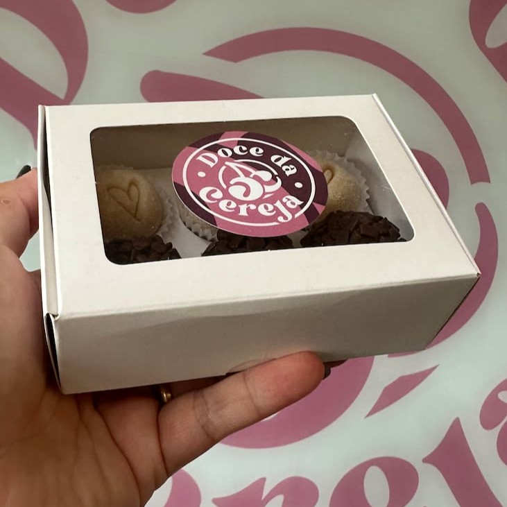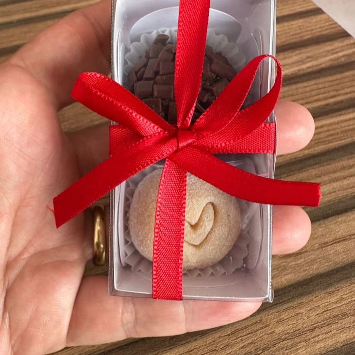Caixinha com 1 brigadeiro ao leite com granule nobre e 1 brigadeiro de Ninho com coraçao