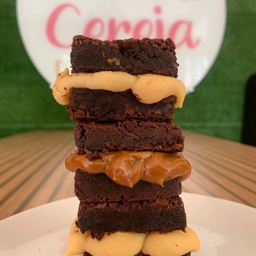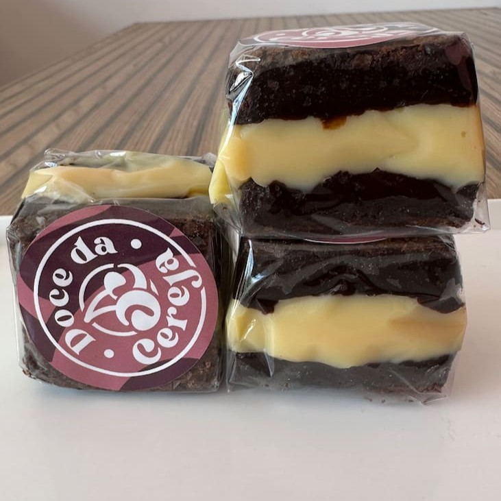 1 Brownie com recheio de brigadeiro de Ninho caseiro