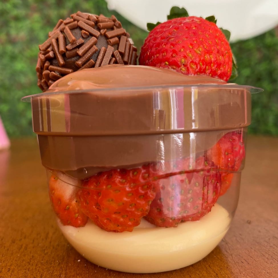 Brownie , Brigadeiro cremoso de Ninho , brigadeiro cremoso ao leite e morangos, decorado com brownie , morangos e brigadeiros com granulado nobre