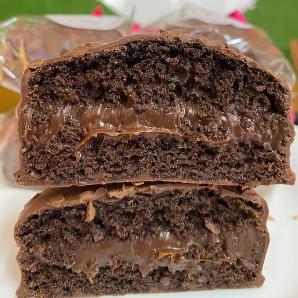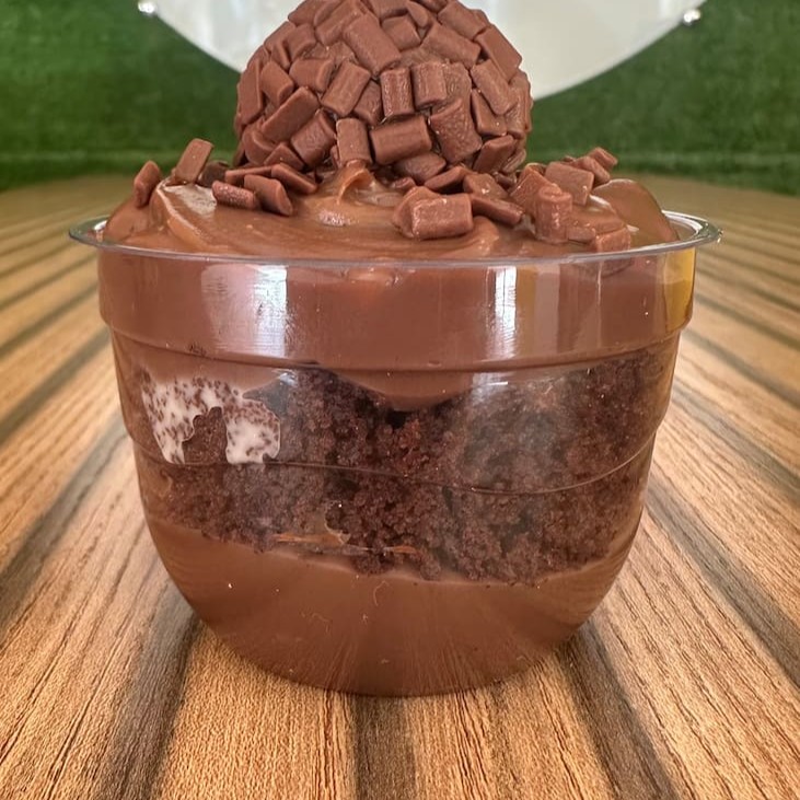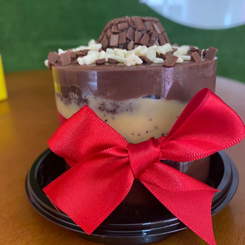 Massa de chocolate nobre bem molhadinha com nossa calda especial,com recheio de brigadeiro cremoso ao leite e cocada cremosa, coberto com trufa blend e coco queimado