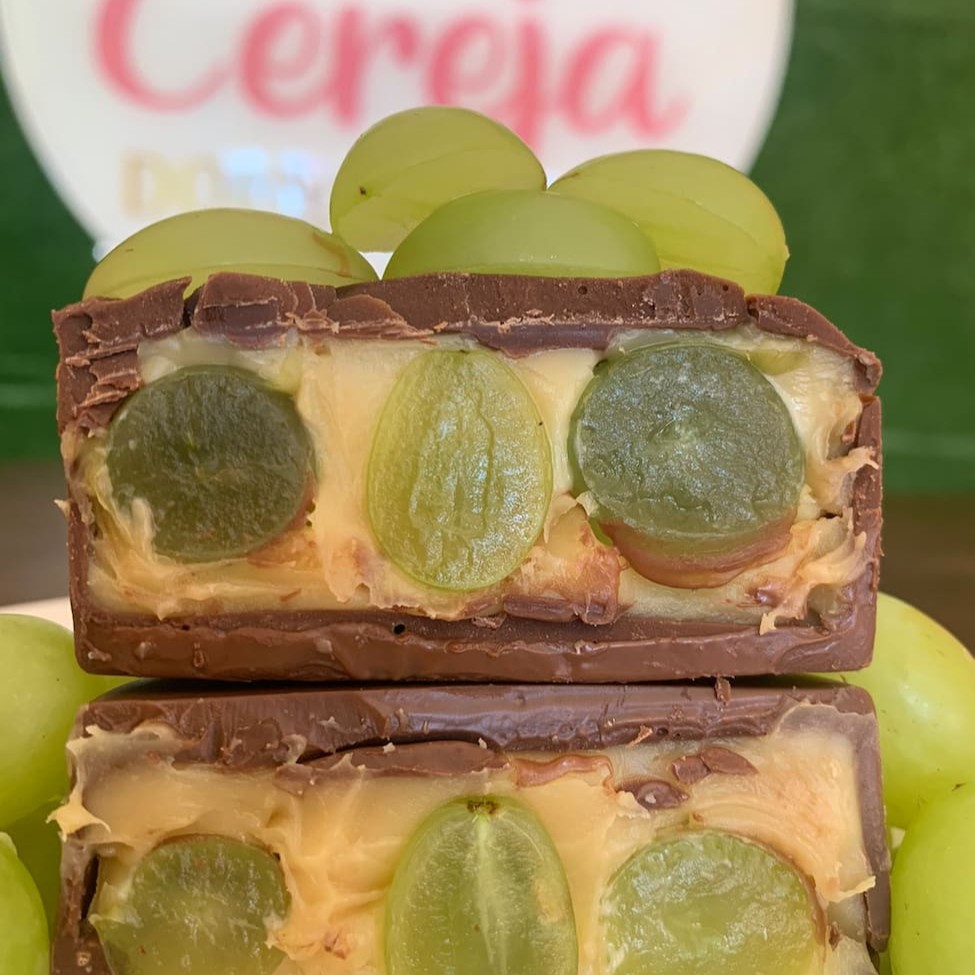 Massa caseira de baunilha com os recheios de creme de Ninho, brigadeiro de Ninho, abacaxi cozido caseiro, morangos e uvas verdes