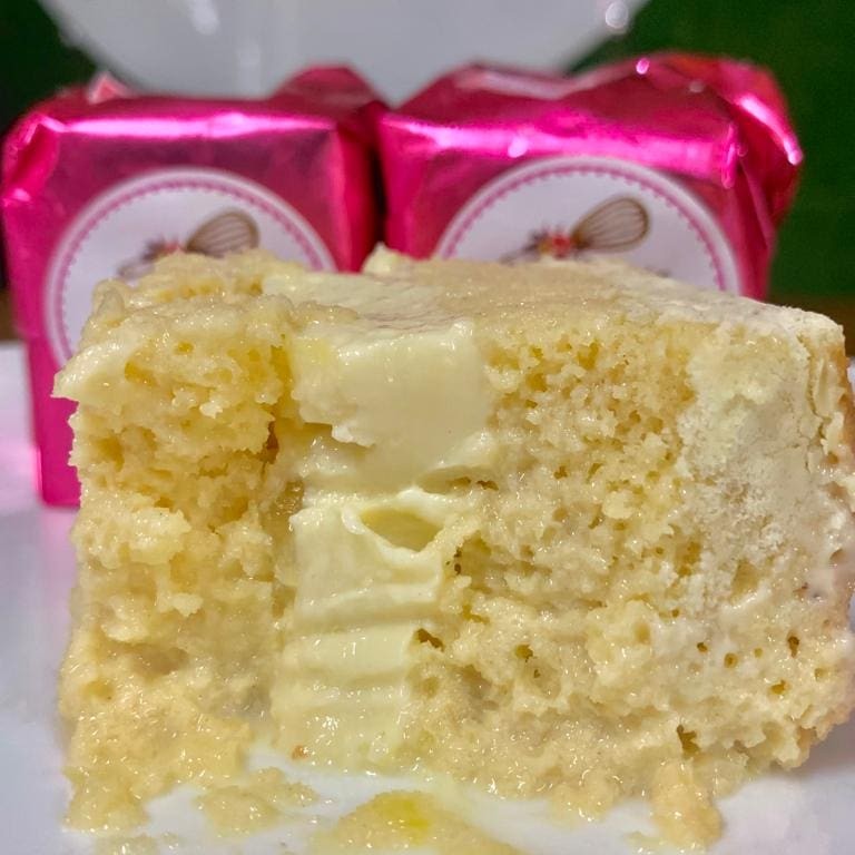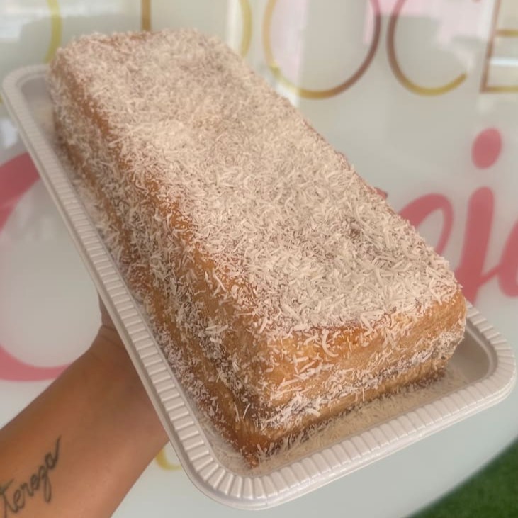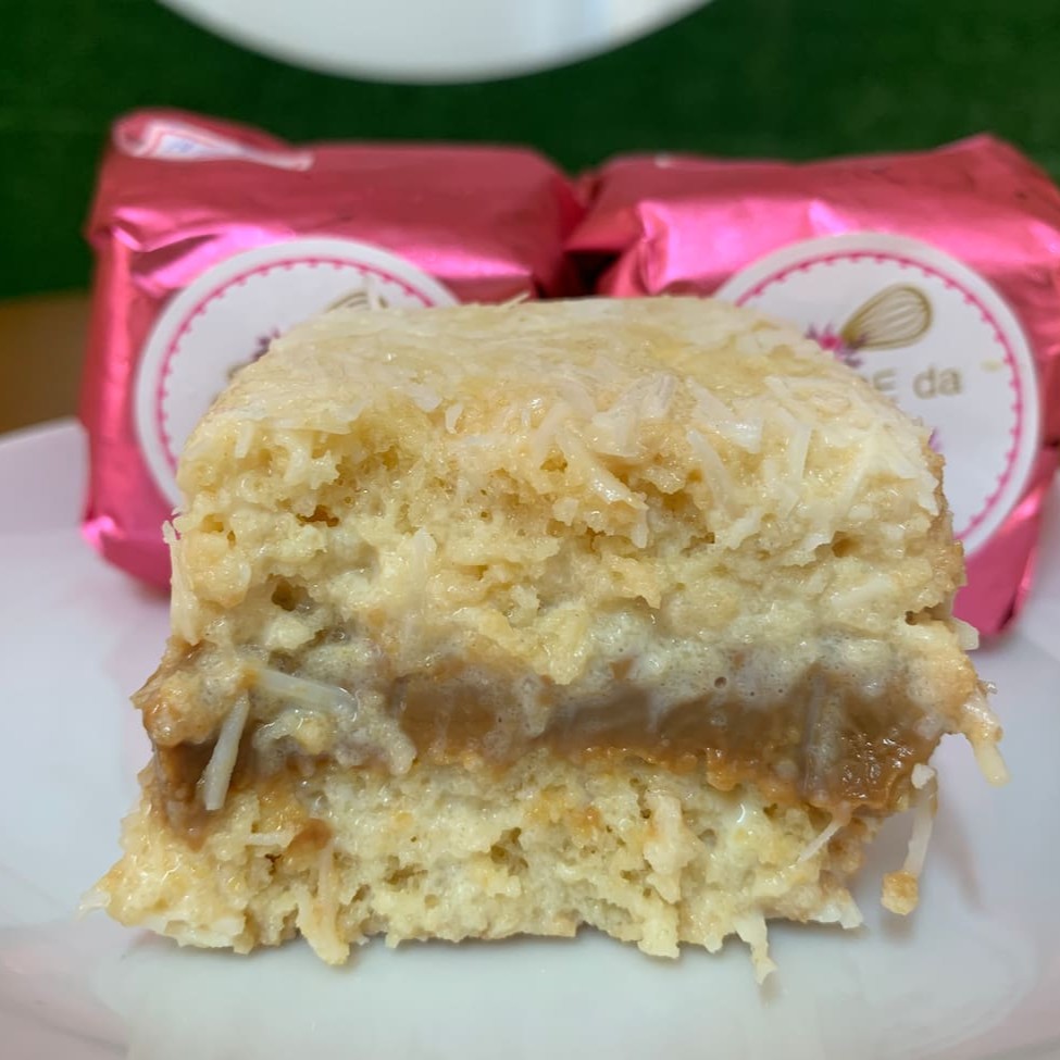 Massa caseira de baunilha bem molhadinha com nossa calda especial , recheio de dois de de leite cozido caseiro e decorado com coco em flocos