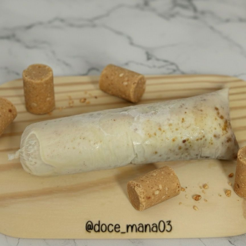Geladinho cremoso de paçoca com uma paçoca inteira dentro do saquinho — sabor delicioso e irresistível. aprox. 170g