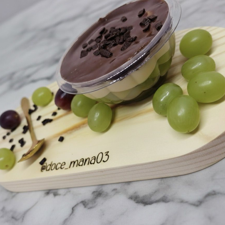 Uvas verdes sem semente, cobertas com brigadeiro de Ninho cremoso e finalizadas com um brigadeiro tradicional e granulado de chocolate nobre. (aprox. 120-130g)