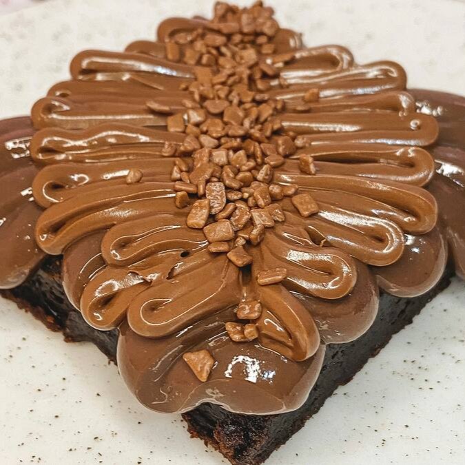 Nosso delicioso brownie, agora na versão em pedaços. Super molhadinho, coberto com brigadeiro ao leite muito cremoso. Serve 1 pessoa. 150g.