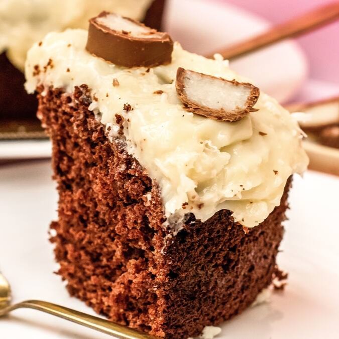 Novidade! Bolinho massa de chocolate, coberto com brigadeiro de coco e chocolate prestígio.