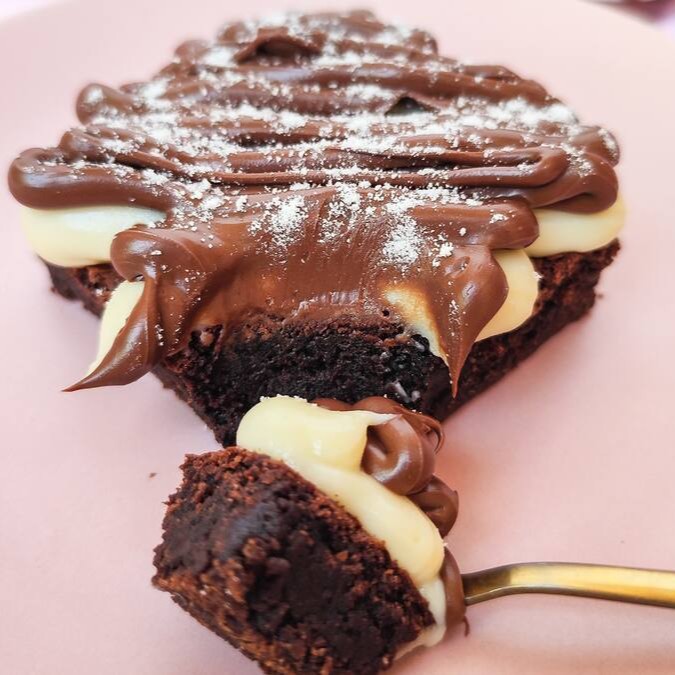 Nosso delicioso brownie, agora na versão em pedaços. Super molhadinho, coberto com brigadeiro ao leite e Nutella original. Serve 1 pessoa. 150g.