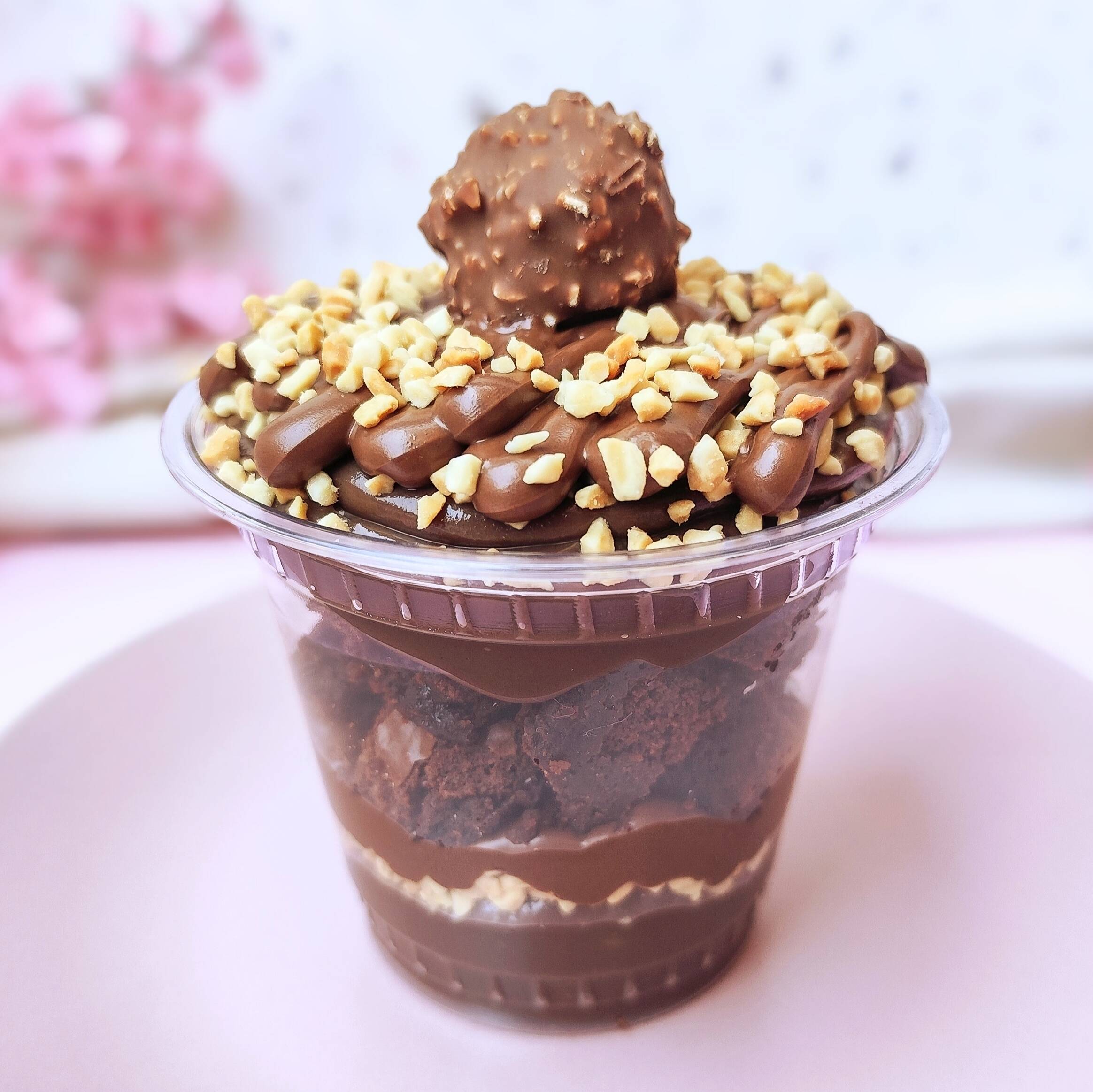 O copo mais sofisticado do cardápio 😍 Brigadeiro ao leite, brownie, amendoim, Nutella e Ferrero Rocher — 300g de puro prazer