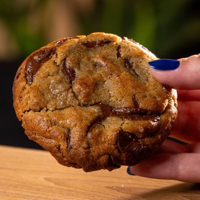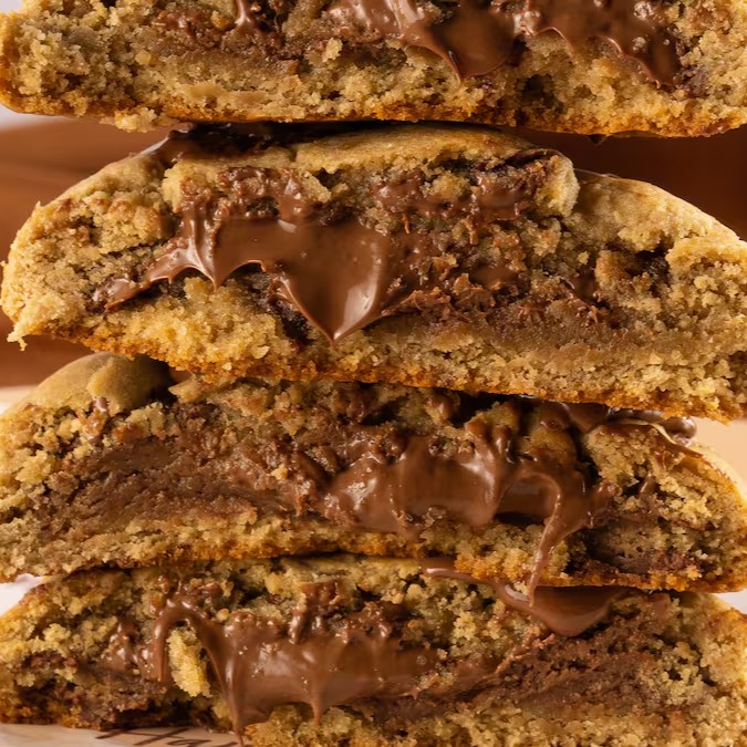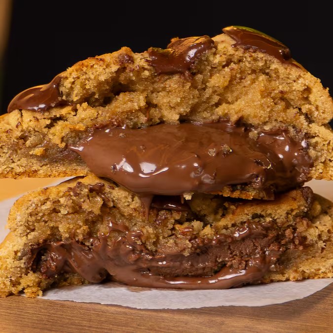 Deliciosa massa de cookies baunilha artesanal, com muitas gotas de chocolate nobre, recheado com autêntica Nutella pura, e pra finalizar, mais gotas do melhor chocolate!