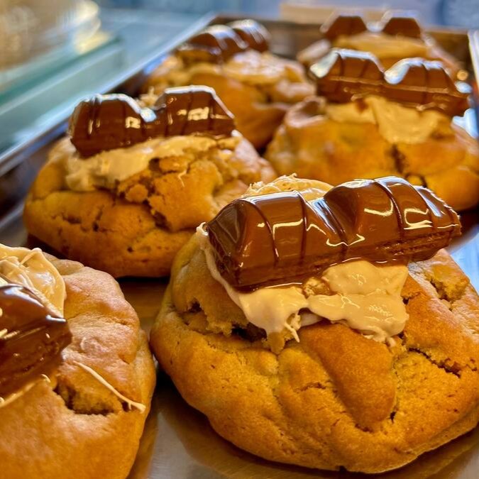 Massa de cookie tradicional americano, recheio com um creme de Kinder bueno de verdade, acompanhado de um Kinder chocolate. Macio por dentro, crocante por fora.