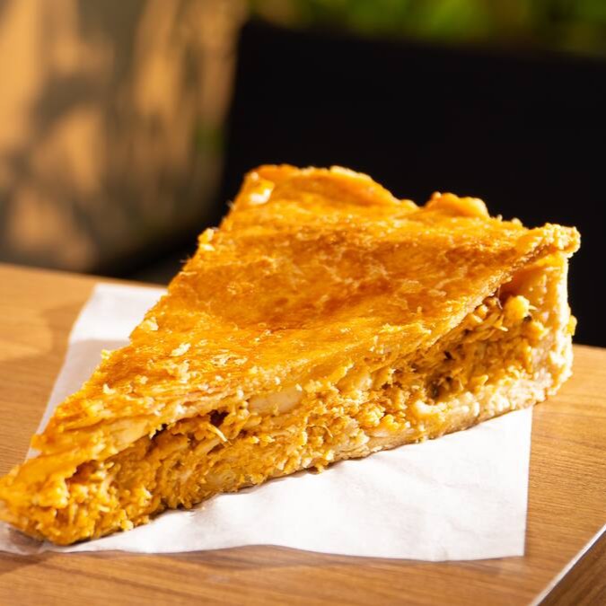 Torta massa macia recheado com frango e com requeijão cremoso