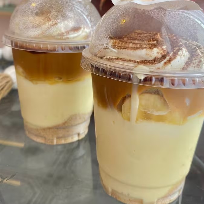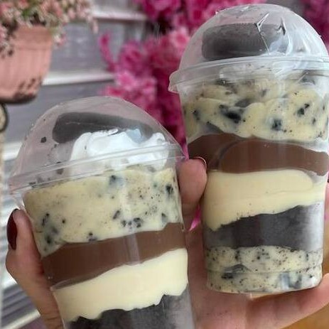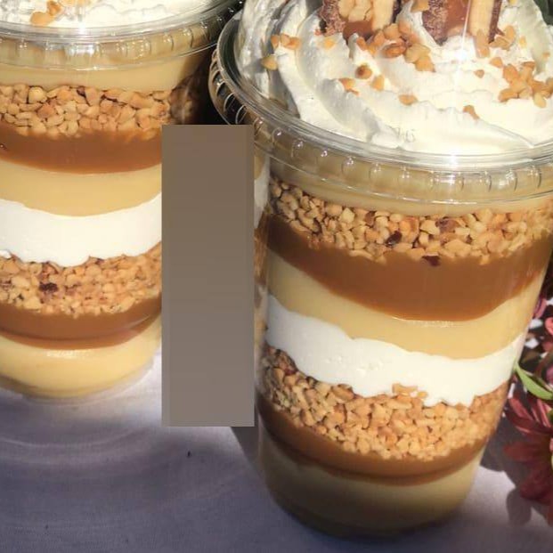 2 Deliciosos Banoffe feito com exclusivo Creme de pavê, bananas caramelizadas, doce de leite Artesanal, farofa de bolacha e chantilly com canela.