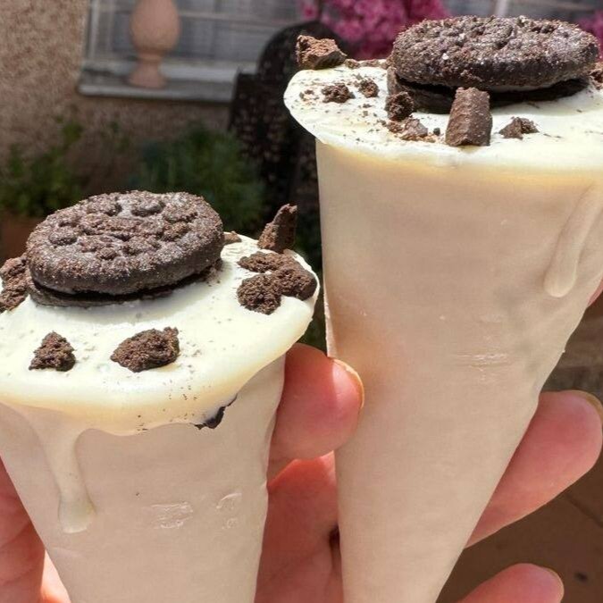 Uma deliciosa casquinha de sorvete recheada com Ninho e Oreo ,banhada com chocolate branco!