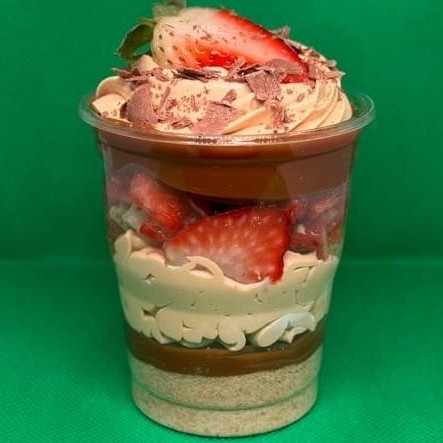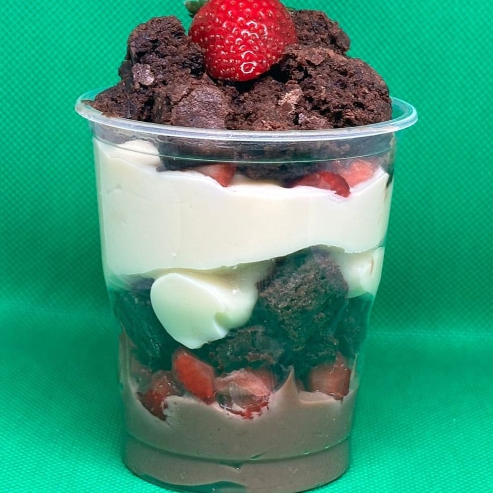 Uma combinação irresistível de sabores e texturas! Nosso Copo de Chocolate é recheado com mousse de morango leve e pedaços frescos de morango, trazendo o equilíbrio perfeito entre doçura e frescor. Para um toque especial, adicionamos castanha de caju crocante e você pode escolher entre duas coberturas: morango ou Nutella. Uma sobremesa deliciosa e sofisticada, ideal para quem quer transformar qualquer momento em uma experiência única!