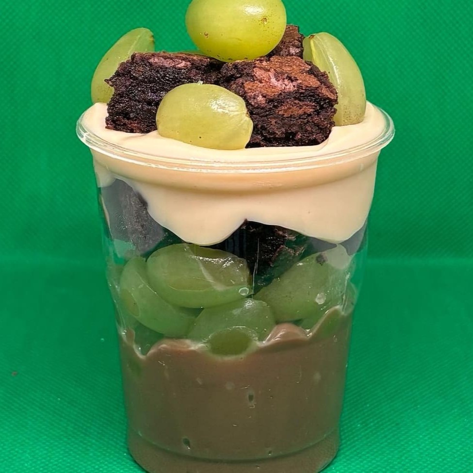 A felicidade em camadas que vai conquistar seu paladar! Nosso copo une: • Brigadeiro ao leite gourmet (cremoso e intenso) • Brigadeiro branco gourmet (delicado e aveludado) • Brownie caseiro (fofinho e chocolatudo) • Uvas verdes sem semente (frescas e crocantes) A combinação perfeita de: • Cremoso + crocante • Doce + levemente ácido • Tradicional + surpreendente Perfeito para: • Sobremesas especiais • Presentes gourmet • Momentos de indulgencência Uma explosão de texturas e sabores em cada colherada! Peça já o seu.