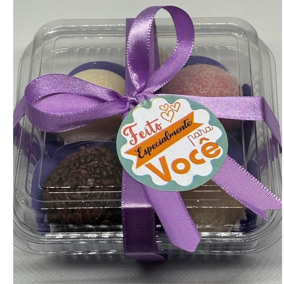 Uma seleção de delícias que vai adoçar o seu Dia! Nossa Caixinha da Felicidade 2 traz 4 docinhos gourmet, cada um com aproximadamente 30 gramas, preparados com todo o cuidado e ingredientes de alta qualidade. Desfrute da surpresa refrescante da Uva envolta em chocolate branco, do clássico e cremoso Brigadeiro Gourmet, do toque cítrico e sofisticado do Brigadeiro de Limão Siciliano, e da doçura inesquecível do Bicho de Pé. Uma caixinha perfeita para quem quer provar diferentes sabores ou presentear alguém especial com uma variedade de delícias!