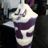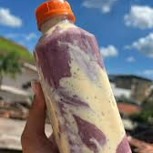 suco de açaí cremoso com 2 camadas de leite em pó