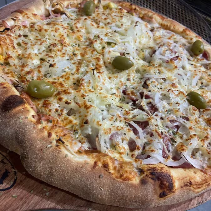 Mussarela, Presunto, Cebola, catupiry, parmesão, orégano e azeitona
