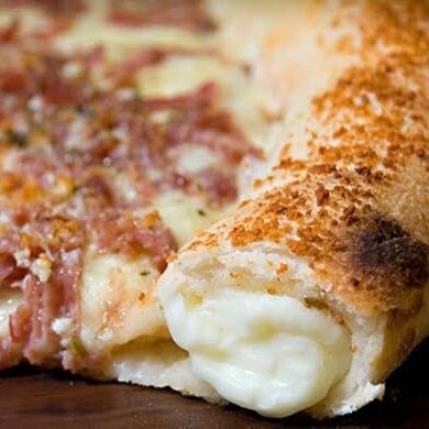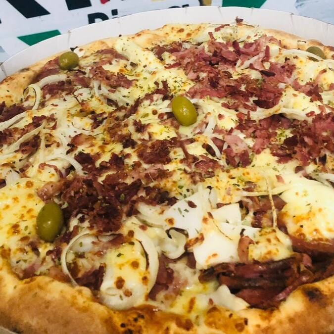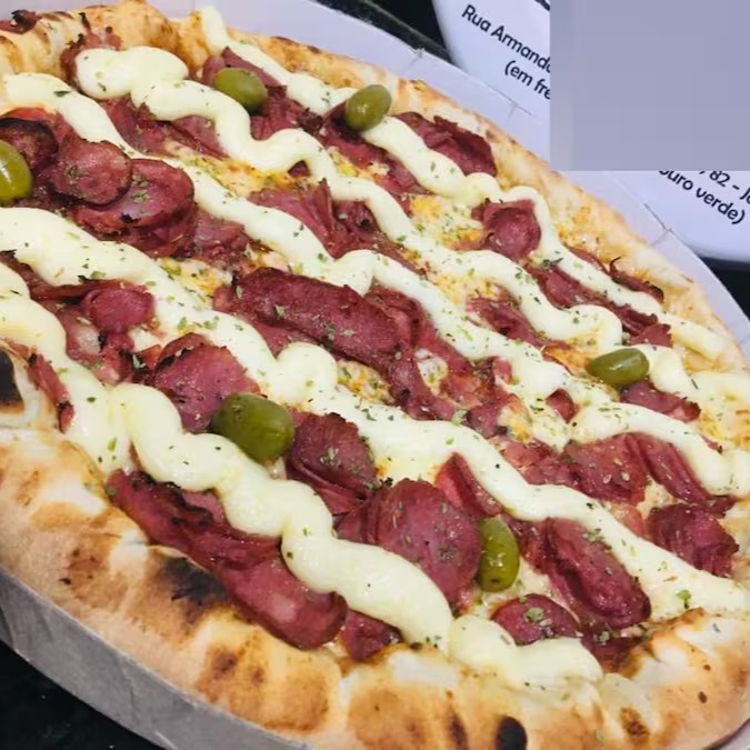 Calabresa, mussarela e Catupiry bacon oregano e azeitona