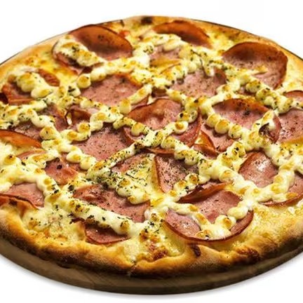 Mussarela, lombo, milho, catupiry, orégano e azeitona