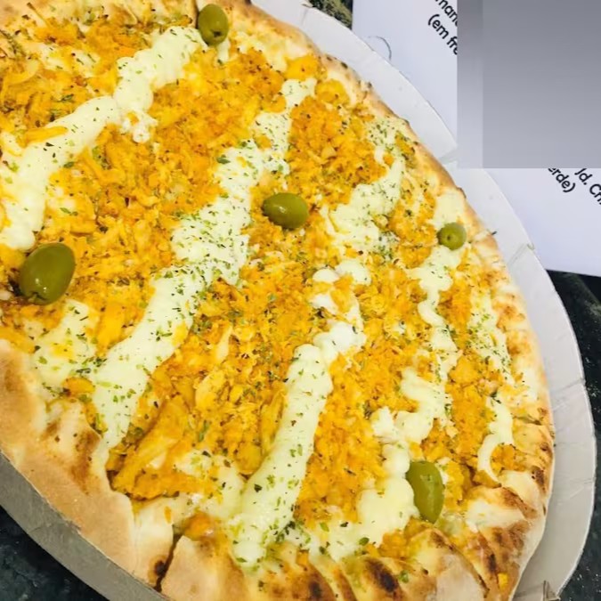 Mussarela, Frango, Milho, cebola, bacom, orégano e azeitona