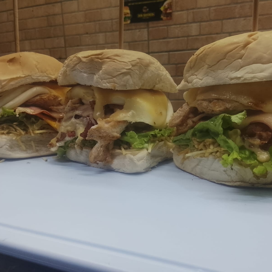 Pão, 2 Hambúrguer, presunto, queijo, contra filé, filé de frango, calabresa,ovo,catupiry,milho,alface, tomate, ketchup e maionese