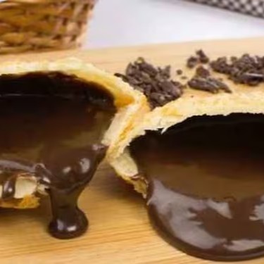 Delicioso Pastel Doce Feito na Hora Coberto de Açúcar e Canela Recheado de Chocolate Ao Leite.