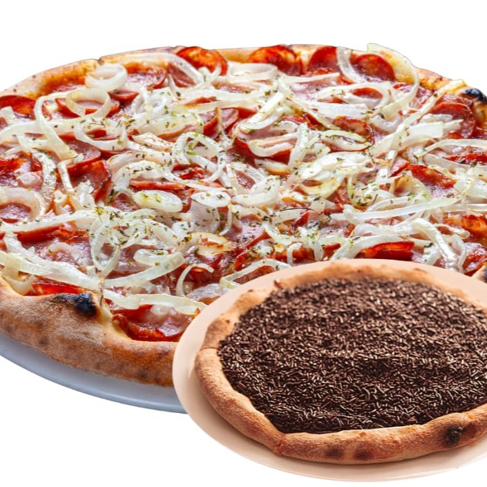 Pizza Calabresa 8 Fatias + Broto Brigadeiro 4 Fatias