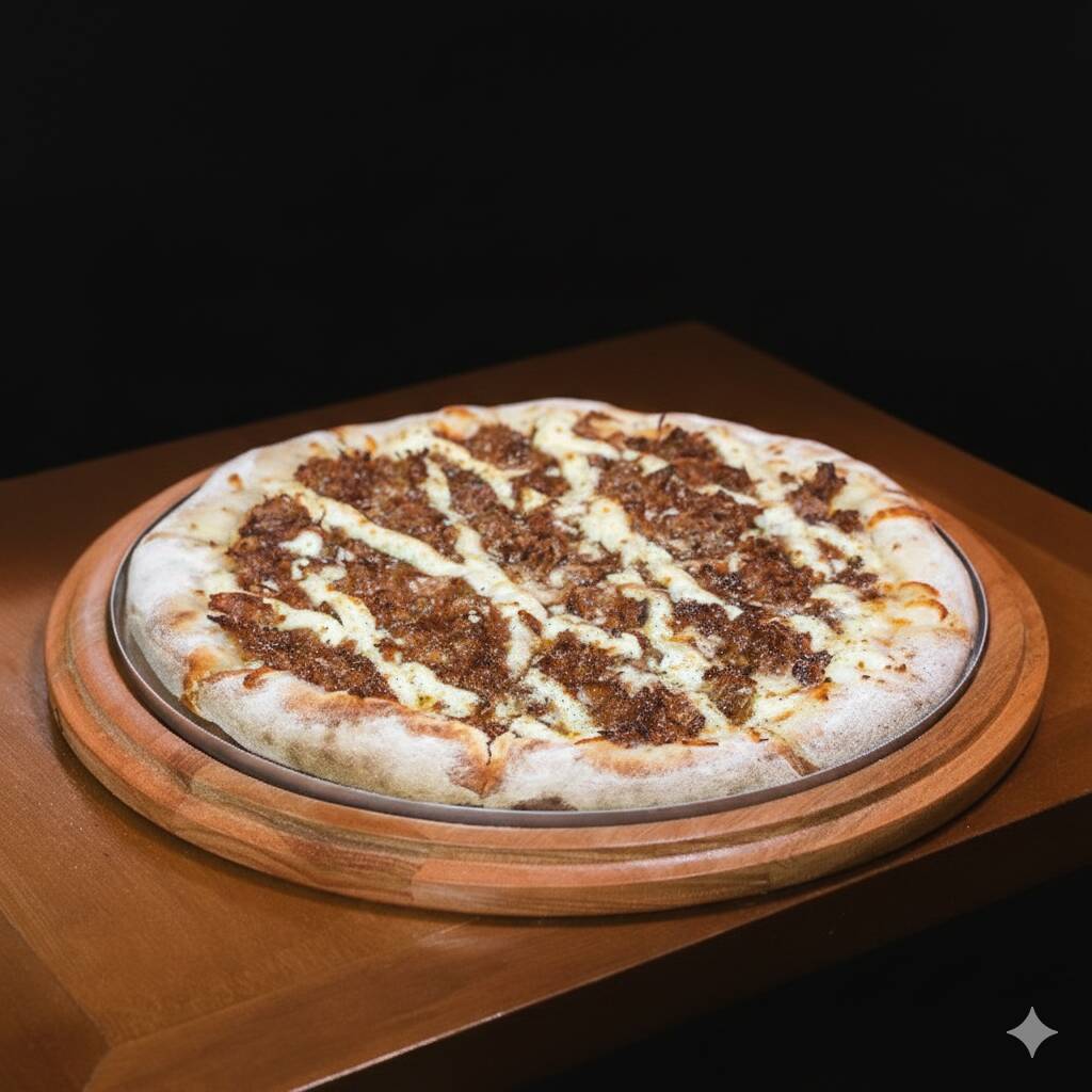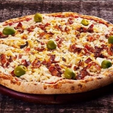 Pizza recheada com queijo muçarela, bacon, azeitona e orégano, trazendo um sabor defumado e adocicado que vai conquistar seu paladar.