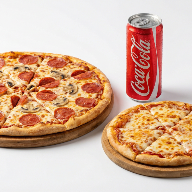 Pizza De 8 Fatias + Pizza De 4 Fatias + Coca Lata