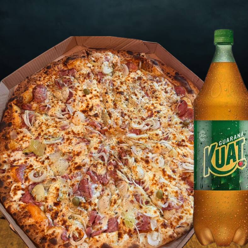 12 Fatias + Kuat 2l (sendo 1 Pizza De 8 Fatias + 1 De 4 Fatias)