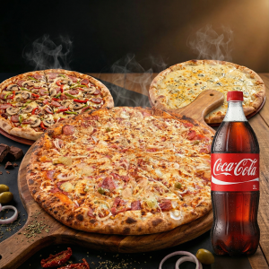 Escolha até 2 sabores deliciosos da sua pizza e aproveite de uma coca 2l geladinha