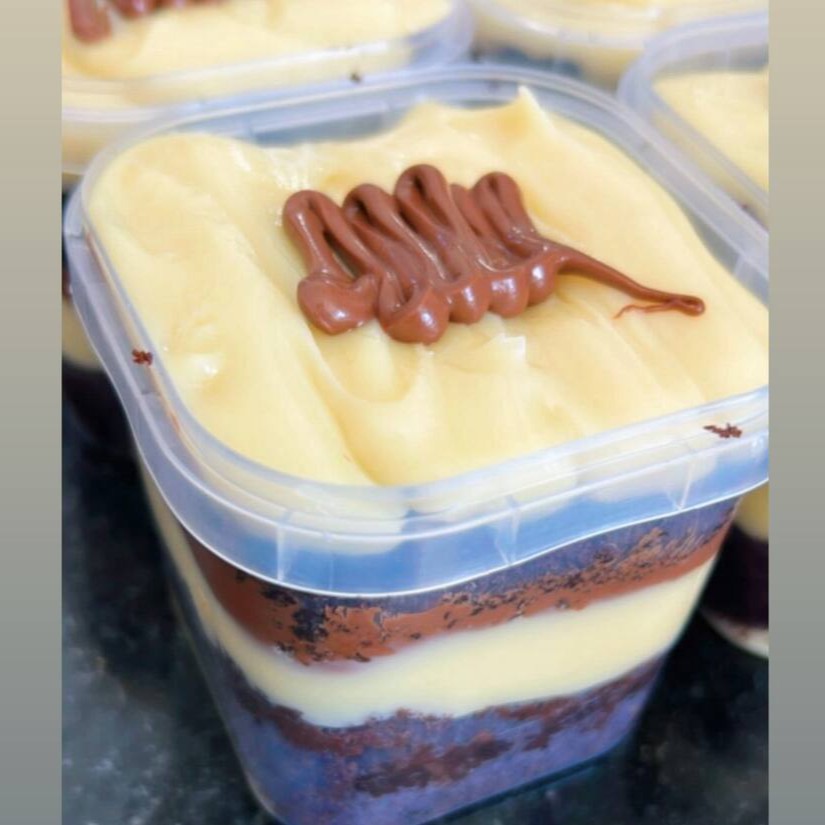 Pedaço de brownie molhadinho, brigadeiro cremoso de Ninho e finalizado com Nutella