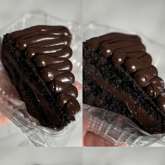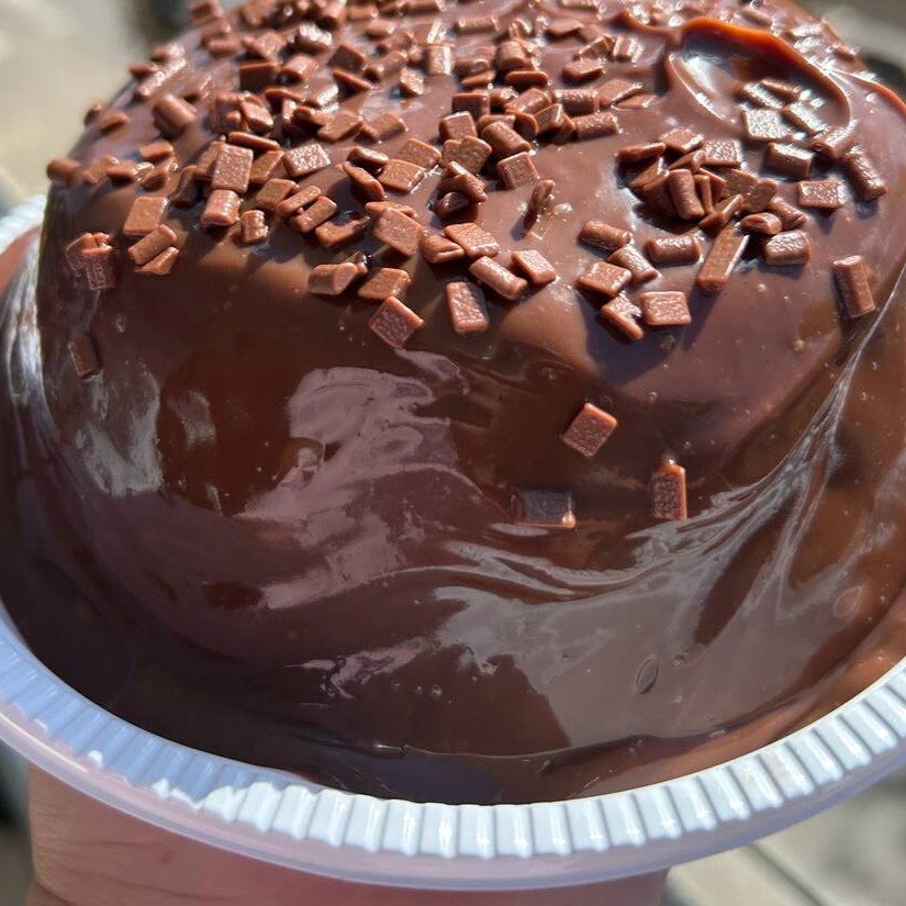 Massa de cacau black, recheado com cremoso brigadeiro intenso. Finalizado com granulados de chocolate