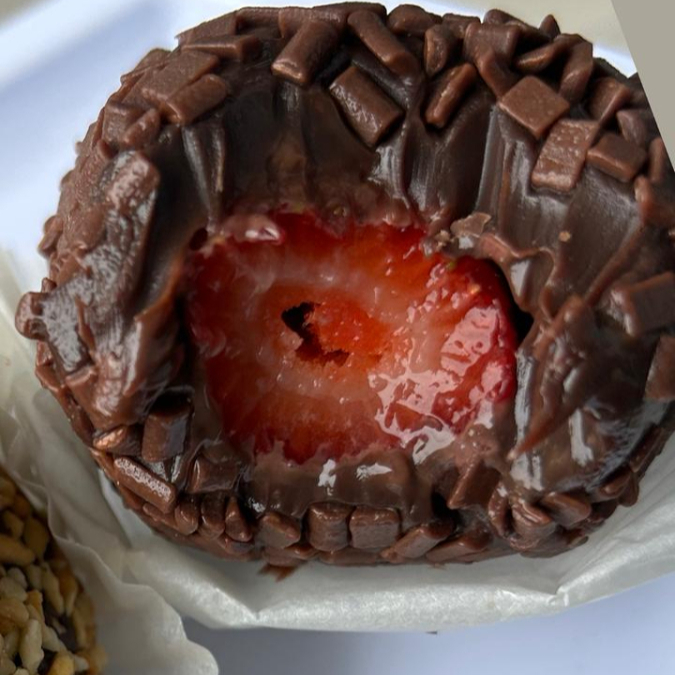 Morango envolto de brigadeiro tradicional e passado no granulado nobre ao leite